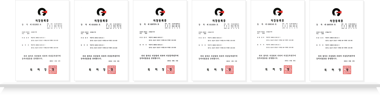 끊임없는 제품연구개발로 다수의 특허 및 디자인등록까지